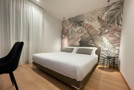 L'appartamento Deluxe, con un letto matrimoniale, un comodo divano letto nella zona giorno, può ospitare comodamente fino a 4 persone. L'appartamento si trova al primo piano, ha una suggestiva vista sulle montagne, è la soluzione perfetta per il tuo soggiorno di lusso.
